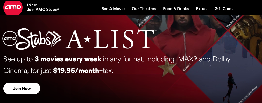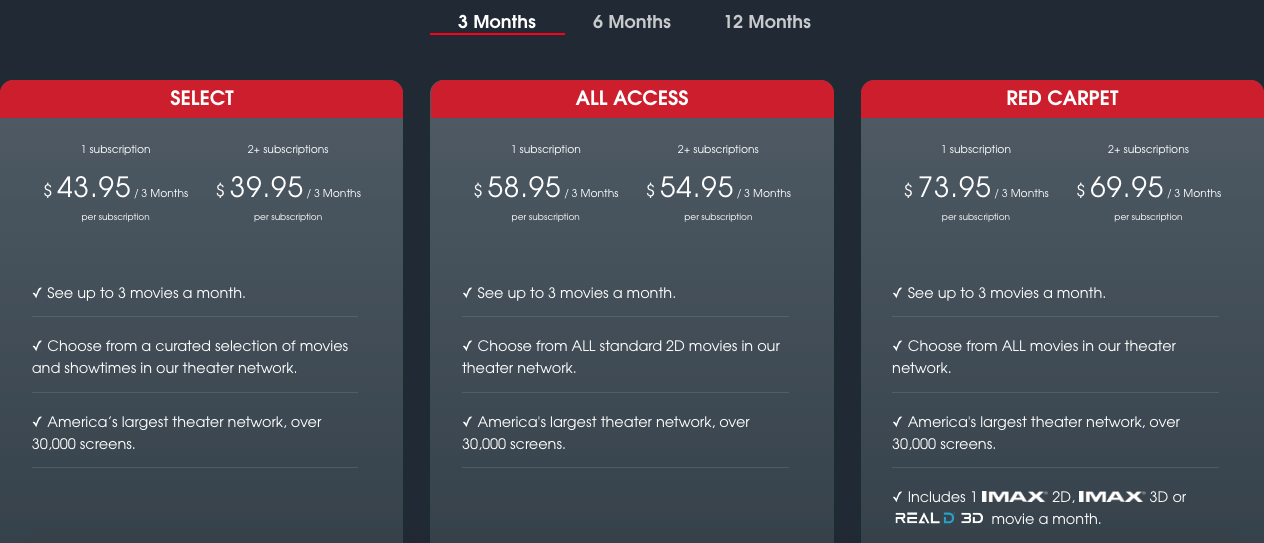 The pricing structure with AMC is much simpler and more straightforward. For $20 a month without any commitment, you can watch 3 movies a week, in any format