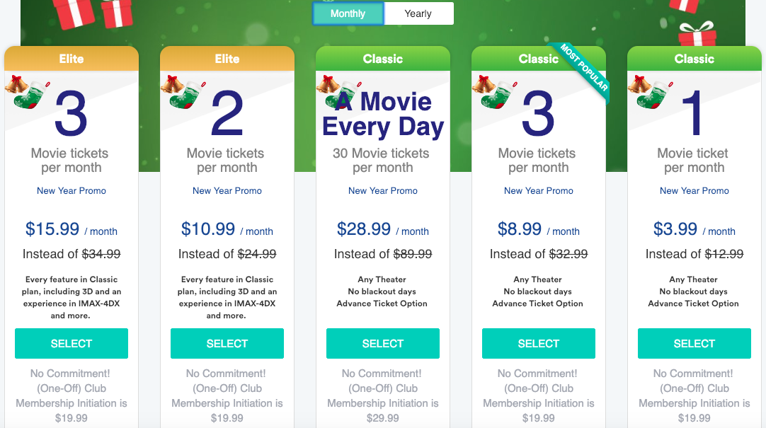 As you can see, subscription prices don’t change, but whether the initiation fee is added depends on the level of commitment you have with Sinemia. If we look at the same number of movies and the possibilities of 3D and IMAX as we did for MoviePass, Sinemia’s holiday plan is much more affordable. Each movie costs around $5.33. However, without the holiday plan, a movie will cost around $11.67. Their family plan is more or less the same.