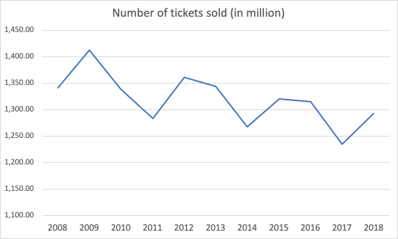 Theaters have been under pressure from streaming services such as Hulu, HBO or Netflix. It’ll only get more intense given the investment race into original content by the incumbents and the upcoming arrival of Disney streaming service which will likely bring, you guess it, Star Wars and Marvel movies – the usually big draws for moviegoers. The theater attendance in the US increased in 2018 compared to 2017 after a downward trend for the past years