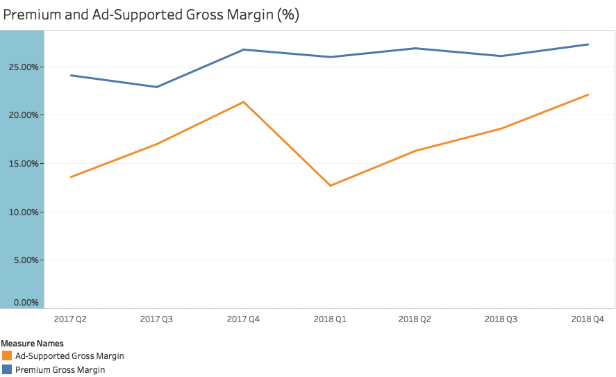 Gross Margin for both revenue streams went up with Ad-Supported gross margin growing at a faster clip in the last four quarters