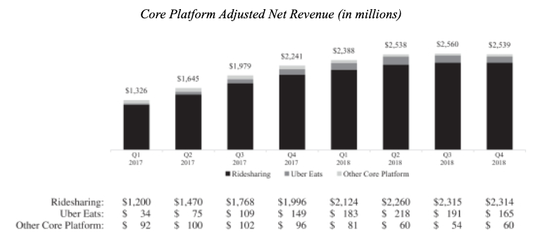 Our Uber Eatsoffering allows consumers to search for and discover local restaurants, order a meal at the touch of a button, and have the meal delivered reliably and quickly. We launched our Uber Eats app just over three years ago, and we believe that Uber Eats has grown to be the largest meal delivery platform in the world outside of China based on Gross Bookings. For the quarter ended December 31, 2018, the average delivery time was approximately 30 minutes.