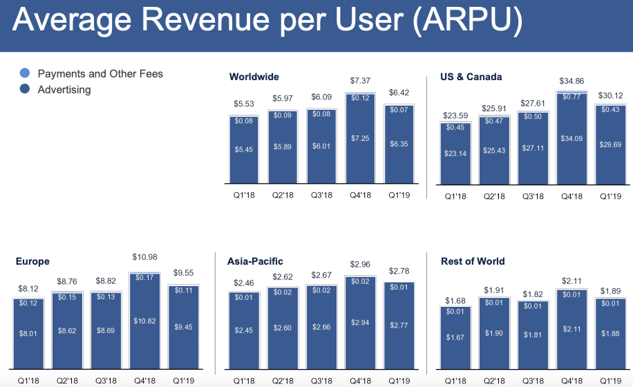 Average Revenue Per User YoY Growth in US & America is pretty impressive given how competitive the market is and the size of Facebook’s already massive business.