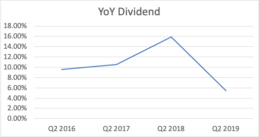 Dividend growth decreased compared to last year