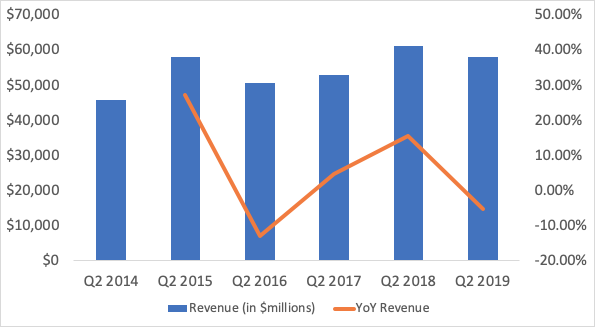 Revenue in Q2 2019 is down by 5% YoY