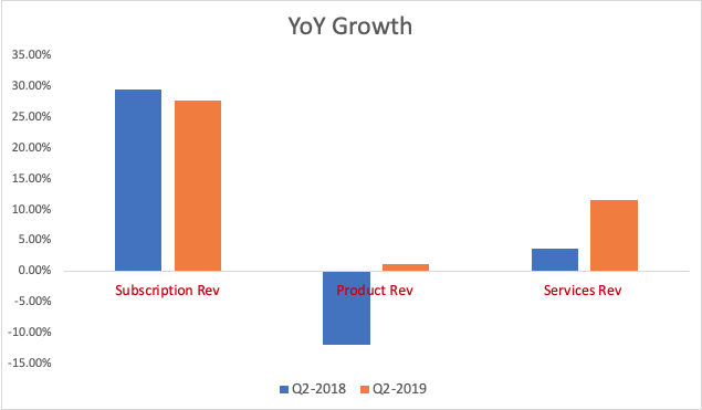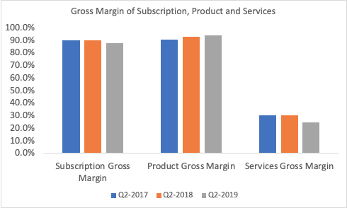 Subscription and Services saw their Gross Margin slightly slip across the last 3 Q2s, both outperformed by Product. It’s obvious that Subscription and Product are significantly more profitable than Services.