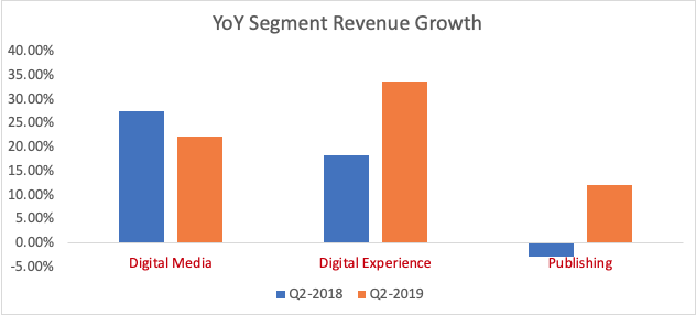 When YoY revenue growth is looked at, Publishing and Digital Experience impressed, compared to Digital Media