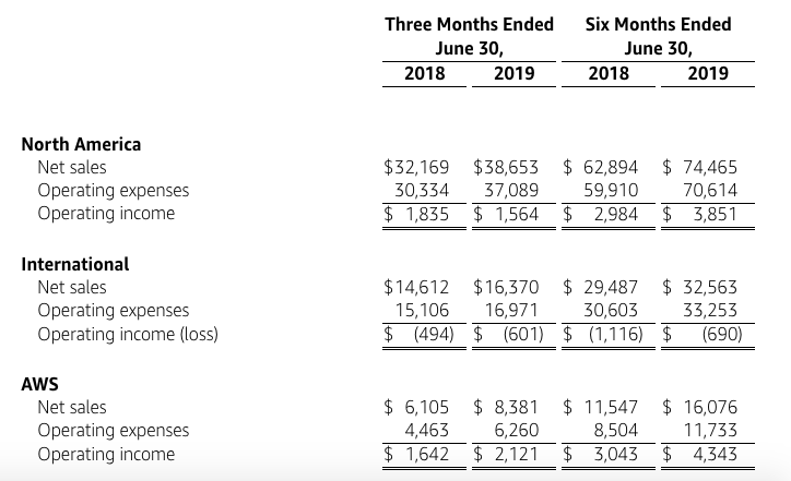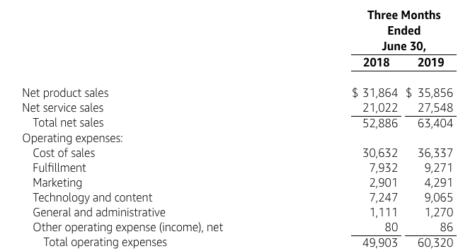 In the last 90 days, Amazon recorded $63 billion, meaning that it took the company less than 36 hours to make $1billion. An extraordinary rate. Compared to last year’s Q2, revenue rose by 20% with Services (31%) outperforming Products (12.5%). Nonetheless, gross margin slipped as this quarter’s figure is at 4.8% compared to 5.6% last year.