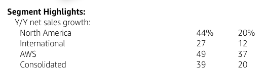 At 37%, AWS’ YOY growth is the lowest recorded in a long time, but the law of big numbers should be taken in account here as the division is not as small as it used to be. If broken down into more strategic categories, AWS isn’t the segment with the biggest YoY growth (Excluding FX) in the company. It’s Subscriptions. Subscription memberships, especially Prime, play a crucial role in Amazon’s ecosystem. The fact that it notched the biggest growth, ahead of AWS, is very positive for the company.