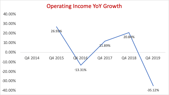 The following financial analyses are what I compiled from 2014 to now. For YoY comparison, there won’t be any figure for 2014. 2014 still appears on the charts, but only because it will take me too much time on my computer to remove it. Please bear with me.