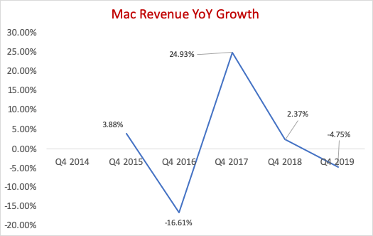 As you can see below, Mac and iPhone declined year over year. The decline was offset by growth in iPad, Services and Wearables.