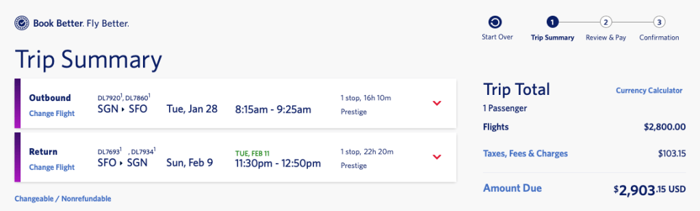 Delta spells out whether a flight can be changed or refunded, but the UI is not as user-friendly as other airlines that we have seen above