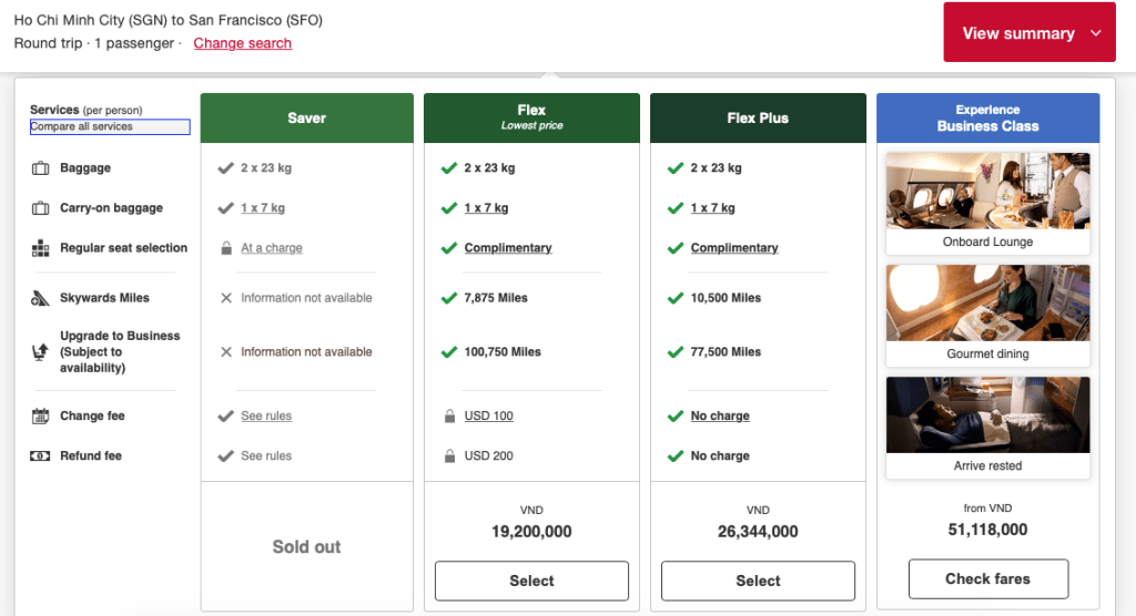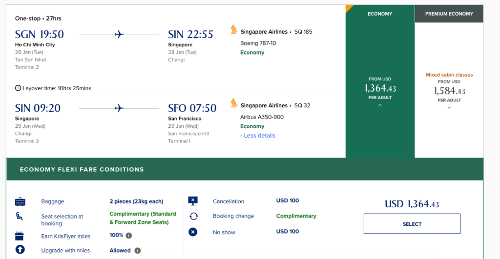 Similar to Emirates or Cathay, Singapore Airlines makes it easy for travellers to see what they are paying for