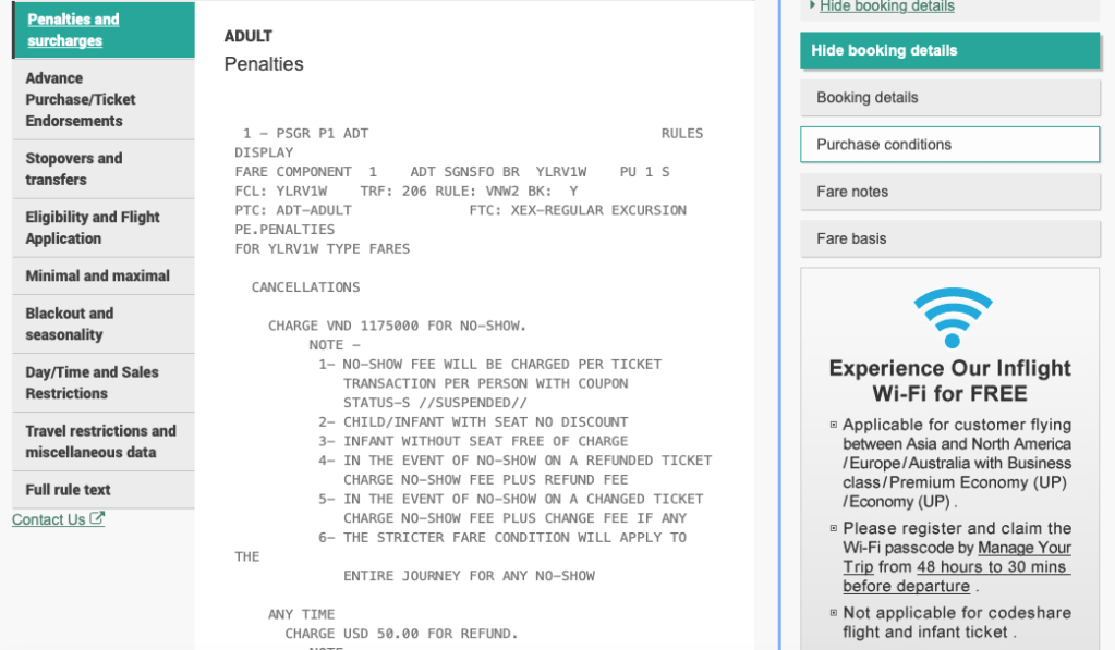 During a purchase process of a flight ticket, interested buyers like you and myself care a lot about the policies such as those on baggage, change, rewards redemption, cancellation or refund. The longer and more expensive a flight is, the more we want to know about the policies of such a flight. Let’s look at how some of the popular airlines display their policies