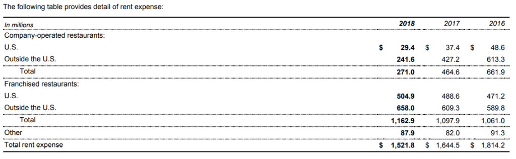 In 2018, the company was on the hook for smaller rent expense at company-operated restaurants than at franchised outlets.