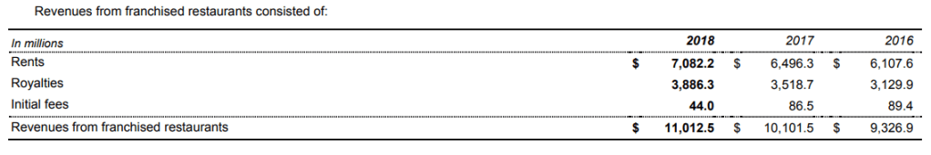 It is very interesting that the net restaurant addition in 2018 was bigger than that in 2017, but the company added smaller initial fees in 2018 and bigger revenue from rent and royalties than in 2017.