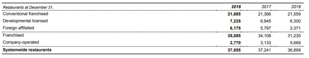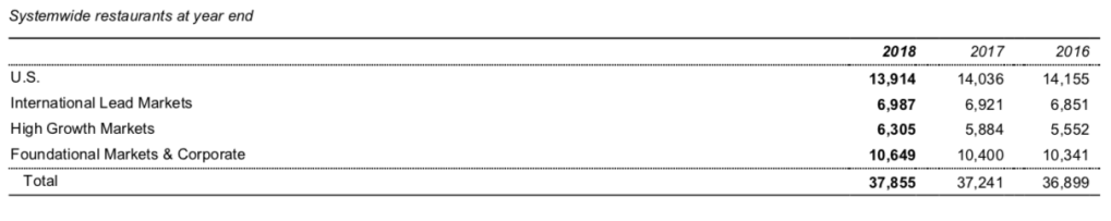 Regarding restaurant counts, systemwide restaurant count went up compared to 2017, but presence in the US shrank.