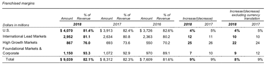 In terms of operating margin, Foundational Markets led the way in the franchise department while International Lead Markets took the top spot in the company-operated one.