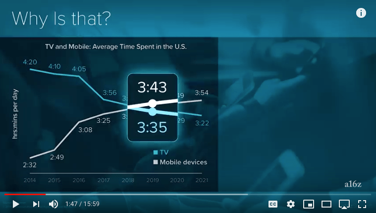 The issue I have with the use of the slide is that it’s unclear what activities an average person spends on the phone. Is the rise of usage due to streaming? Video games? Activities that have less to do with superapp wannabes?