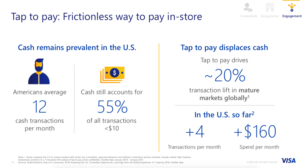 - In the US, tap-to-pay cards led to plus 4 more transactions per month and $160 increase of spend per month (2)
