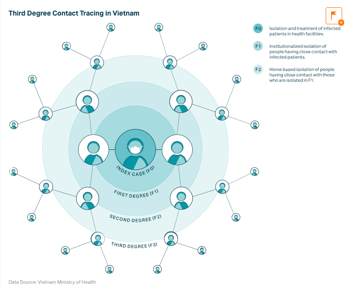 One of the things that I think we did very well is contact tracing. The authority in Vietnam demands that every patient provide detailed information on where and when they had been in the few days prior and whom they had been in contact with. From there, the authority will reach out to those F1 and F2 cases and take appropriate actions. Below is the general idea how it works