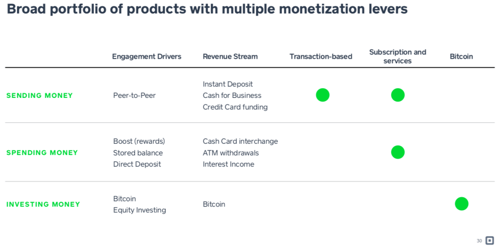 On the Cash App side, the app can enable users to store & transfer funds to another person, spend via a debit card called Cash Card and invest in stocks, ETFs or Bitcoin.