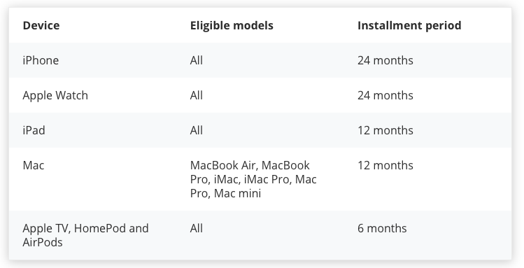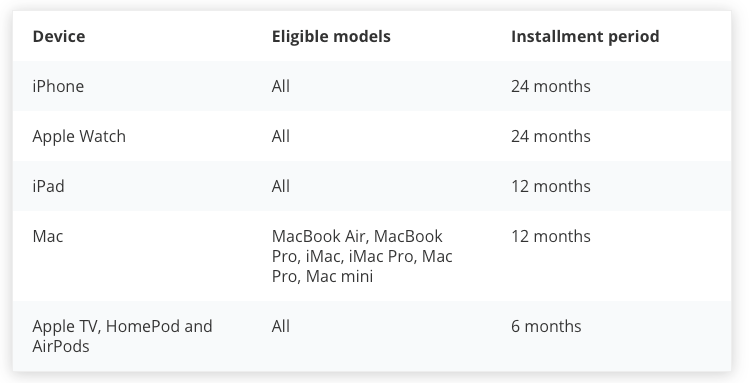 Last year, Apple announced a payment plan for iPhones with 0% interest for 24 months. In June 2020, the payment plan expanded to include other product lines: