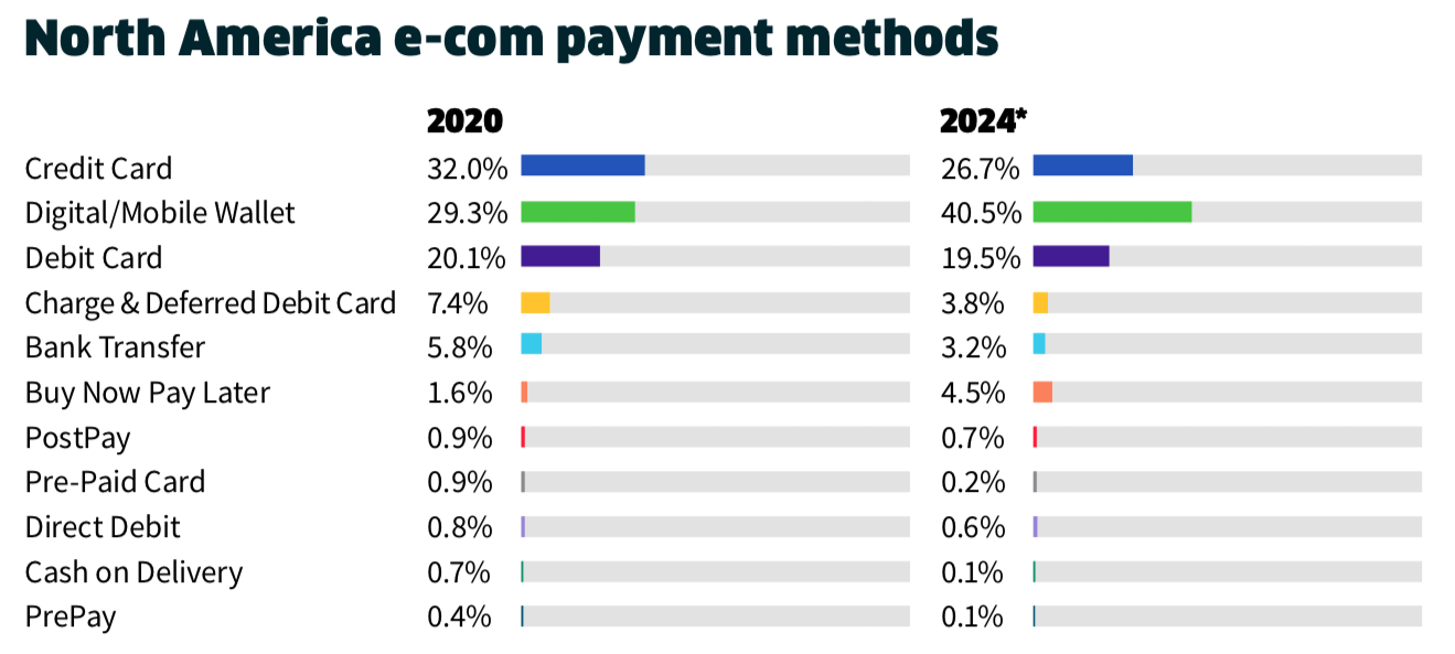 According to the latest Global Payment Reports by FIS, BNPL will make up 4.5% of North America’s eCommerce in 2024, up from 1.6% in 2020.