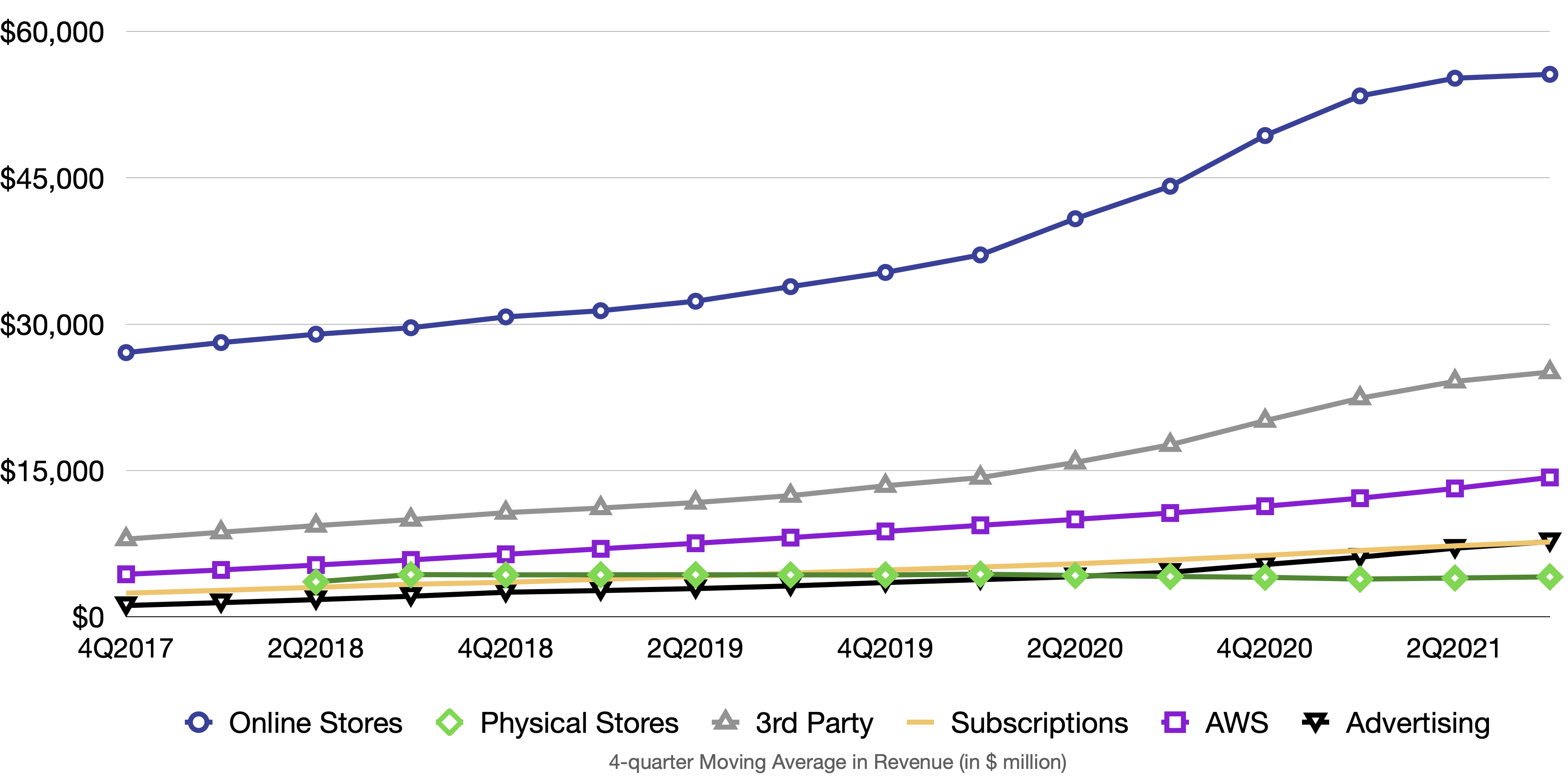 Advertising, AWS and Subscriptions are the top 3 growing segments of the company