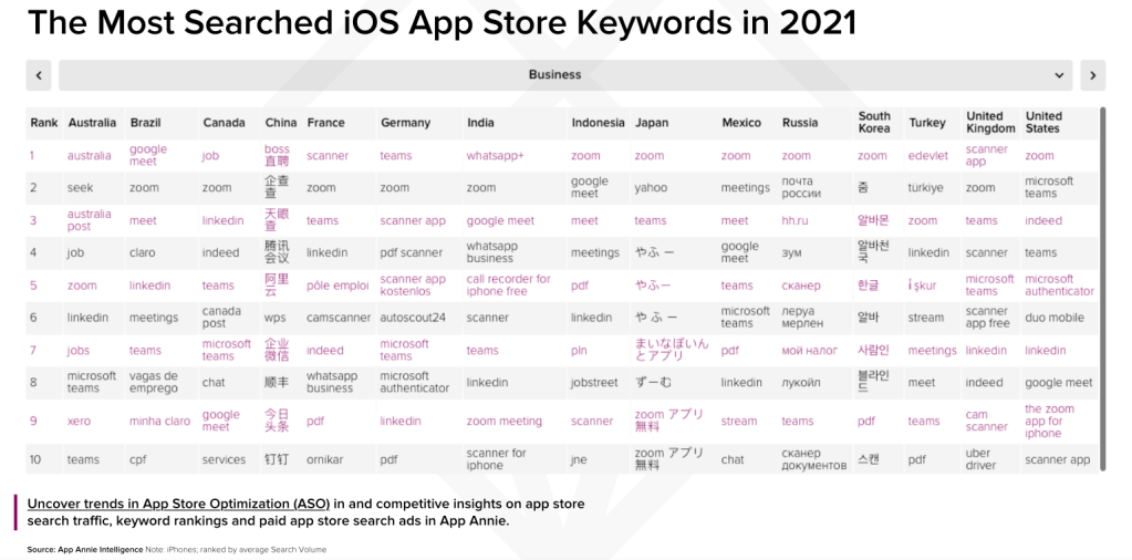 Zoom, Teams and LinkedIn are in the top most searched keywords on the App Store. That’s heartening for Zoom and Microsoft investors because this signals their brand awareness among users. The fact that LinkedIn is among this group signals to me that folks want to update their profile and look for job opportunities. Why else would you look for the LinkedIn app?