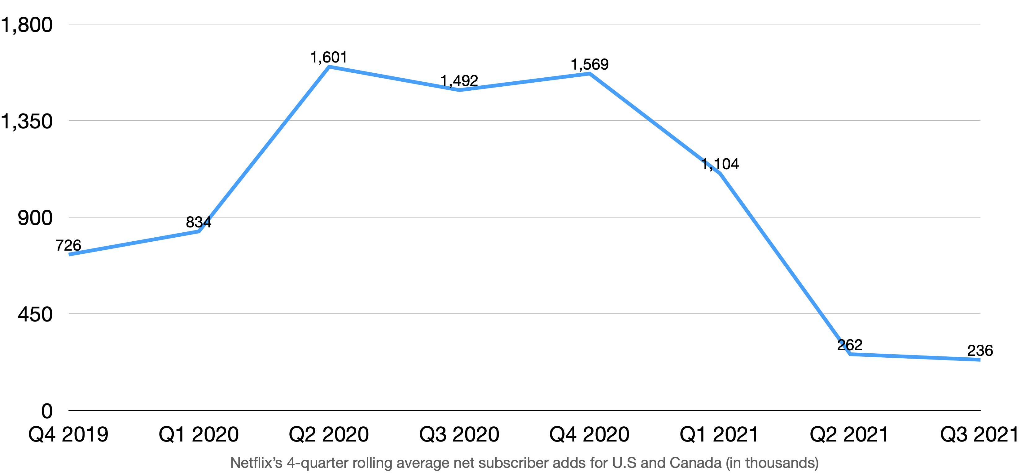 But for the sake of argument, let’s assume that Antenna data is correct. That also means Netflix’s market share has been declining gradually. The 4-quarter rolling average net adds for US and Canada has gone down significantly since Q4 2020. Yes, Covid-19 pulled forward subscribers, but that also signals as many in the U.S are vaccinated, the macro environment is no longer favorable to Netflix as it was at the onset of the pandemic. When the number of new adds decreased despite all new releases in 2021, why does management think it’s a good idea to raise prices? Do they have any tricks up their sleeve? Or is the new price hike aimed at increasing revenue with the hope that subscribers will stay regardless?