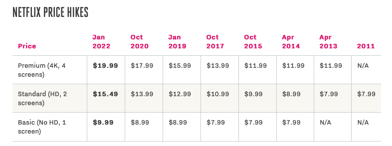 If you live in the U.S and are planning to subscribe to Netflix, get ready to pay more. The company announced a few days ago that all plans for audience in the U.S would see a price bump with immediate effect. The basic plan will increase from $8 to $9 per month. The standard and the 4K package will cost new subscribers $15.5 and $20 per month respectively. The Verge has a handy table showing all the hike prices that Netflix rolled out so far: