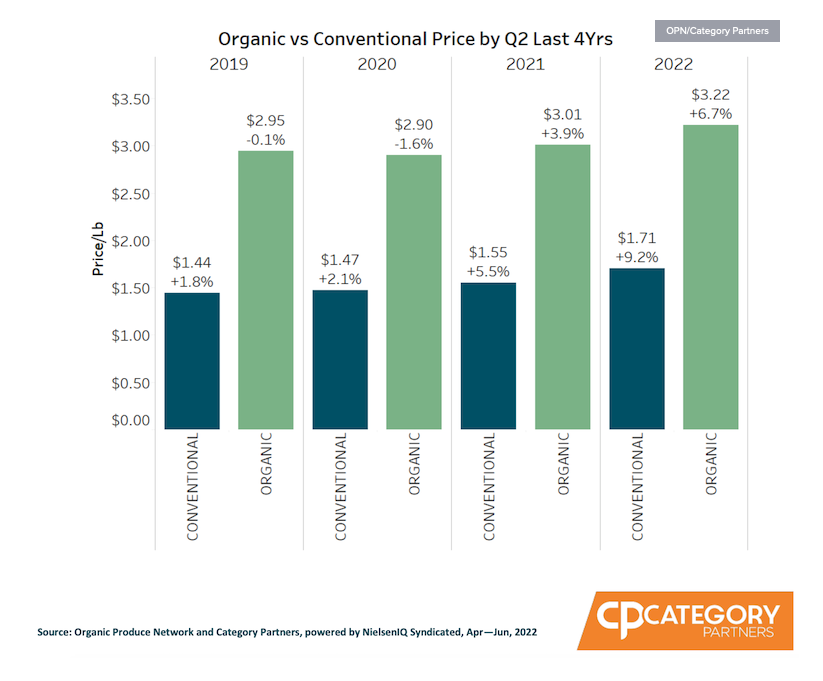 Organic fresh produce tends to be twice as expensive as conventional produce. However, conventional fresh produce had a bigger price hike recently