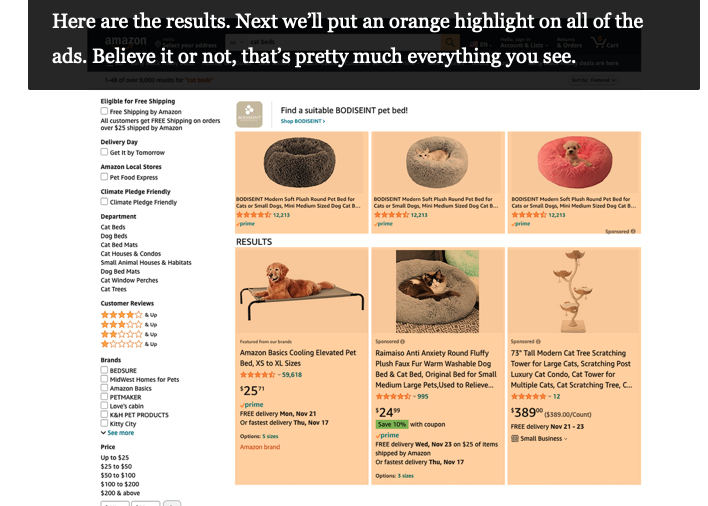 One of the biggest benefits that Amazon brings is the amazing range of products and merchants on its platform. Type any product you want and Amazon will return with possible selections, along with reviews from other buyers. However, search results on Amazon’s website are not as authentic as they once were. A formal complaint by a coalition of labor unions claimed that around one out of every four Amazon search results on Amazon are paid ads. An investigation by Washington Post found that in some cases, third-party sponsored products made up most, if not all, search results. Worse, ads on Amazon look indistinguishable from authentic listings. As a consequence, buyers are NOT presented with the best options based on prices, value and customer reviews. Instead, buyers see what hungry sellers want them to see and Amazon lets them because that high margin from advertising dollars is just too good to pass up.