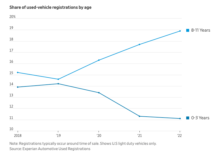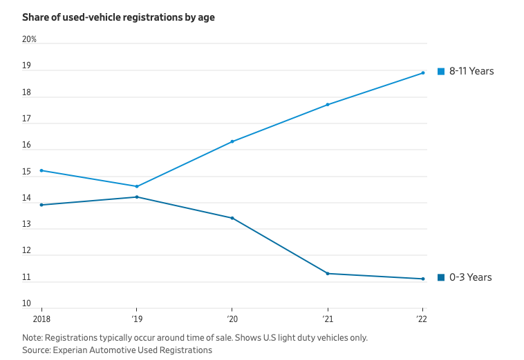 “The average monthly payment for a new car has soared to a record $777, nearly doubling from late 2019“. Absolutely insane.